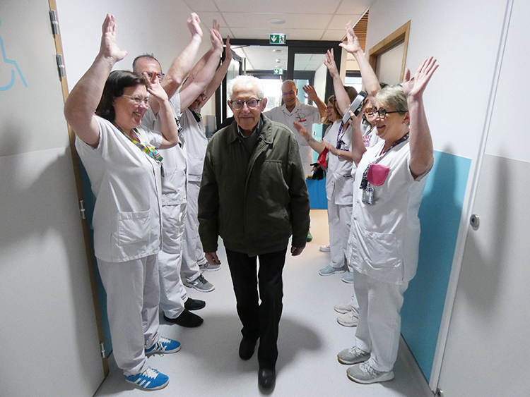 Le premier patient de l’ Unité de Médecine et de Chirurgie Ambulatoire (UMCA) a franchi les portes du rez-de-chaussée du nouveau bloc opératoire. Il a été accueilli par l’équipe de l’unité.