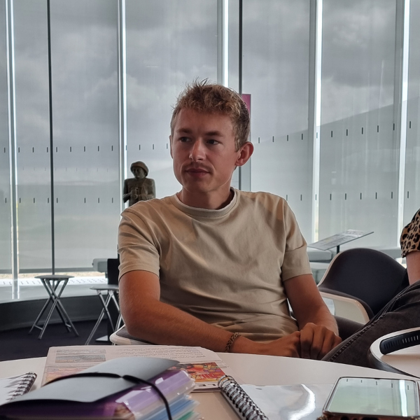 Les participants de l’activité muséothérapie du Centre d’accueil thérapeutique à temps partiel (CATTP) du Centre Hospitalier de Hénin-Beaumont, organisée en partenariat avec le musée du Louvre-Lens, ont eu l’occasion de rencontrer Thomas Verbrugghe, journaliste à La Voix du Nord, pour parler de leur pratique.