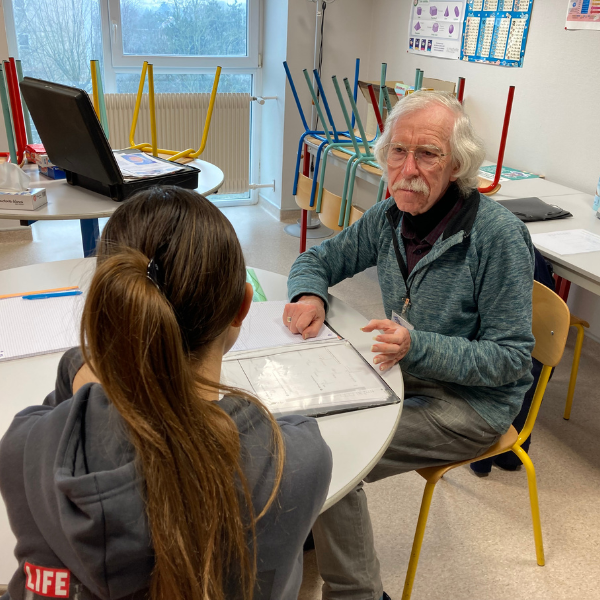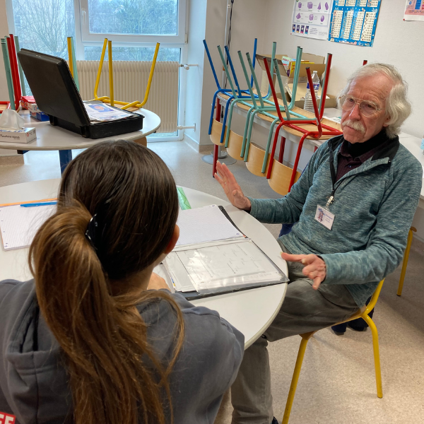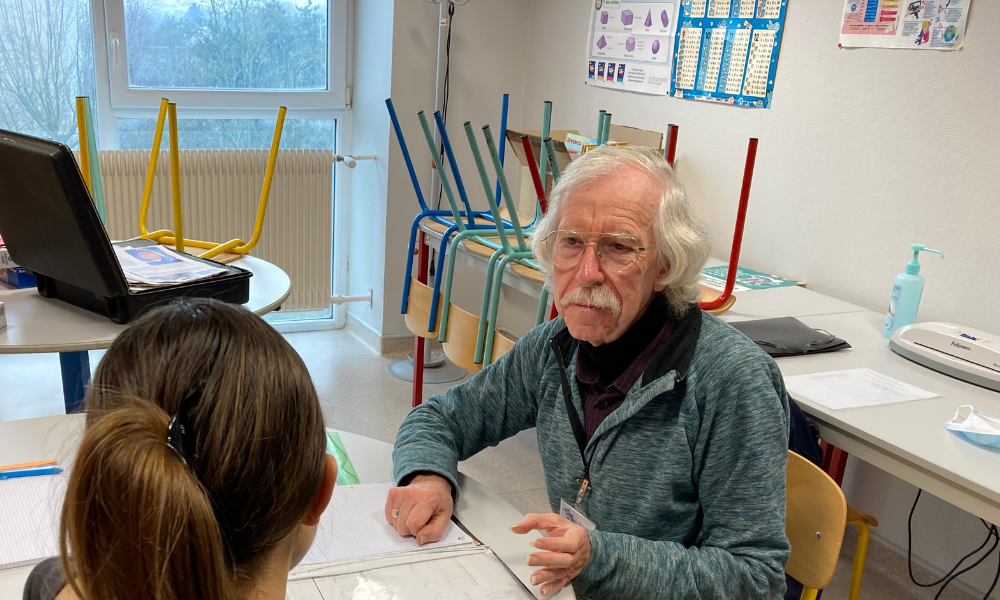 Gérard LATUTE, bénévole passionné, enseigne les mathématiques, la physique et le français à des enfants jusqu’en 6e, 2 fois par semaine ! Pour lui, l’essentiel est de maintenir une continuité dans l’apprentissage, même à l’hôpital.