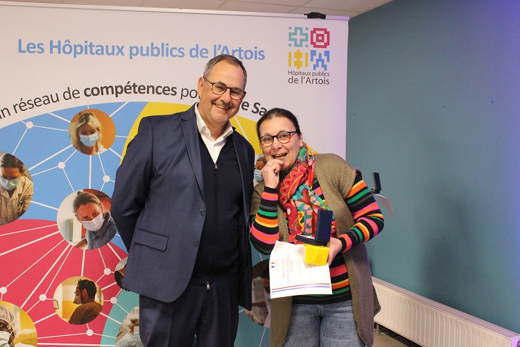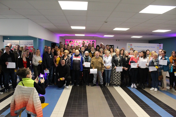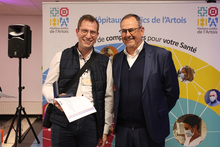 Jeudi 11 avril 2024 a eu lieu la cérémonie de valorisation de nos professionnels, en présence de Thierry DAUBRESSE, Président du Conseil de Surveillance du Centre Hospitalier de Lens, de Bruno DONIUS, Directeur Général, et du Dr Max PECHEUX, Président de la Commission Médicale d’Etablissement.