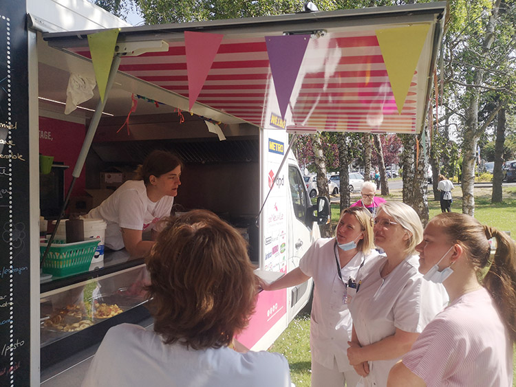 A l’occasion de la tournée gourmande « Toques en Truck », le service de pédiatrie du Centre Hospitalier de Lens a reçu pour la troisième année consécutive la visite de l’association Tout le monde contre le cancer. Au programme : un brunch Toques en Truck 🥐☕, le Burger Toques en Truck 🍔🍟, réalisé par un chef cuisiner pour les enfants pris en charge à l’hôpital de Lens, leur famille et les soignants du Pavillon de Pédiatrie et un atelier pâtisserie 🧁🍰. Un grand merci à l’association pour ce moment !